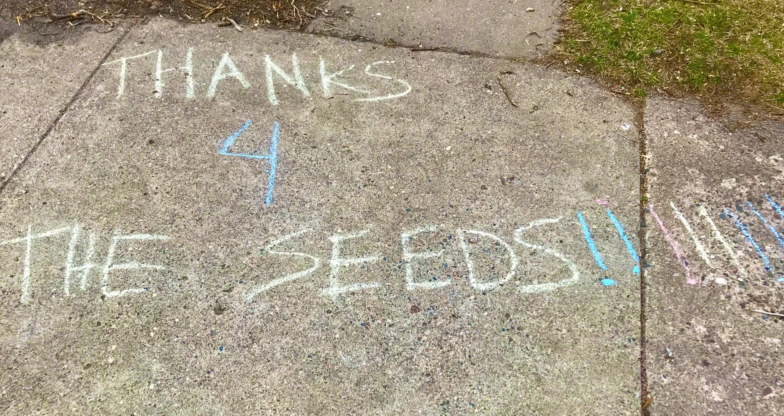 Gratitude left behind by a neighbor at one of the #OutPlanttheOutBreak little free cabinets
